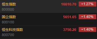 港股恒指高开1.27% 科指涨1.4%内房股集体高开融创中国涨超7%